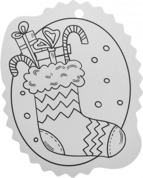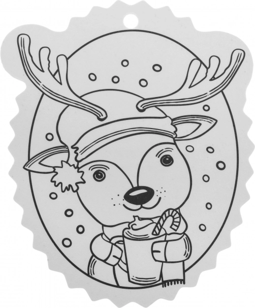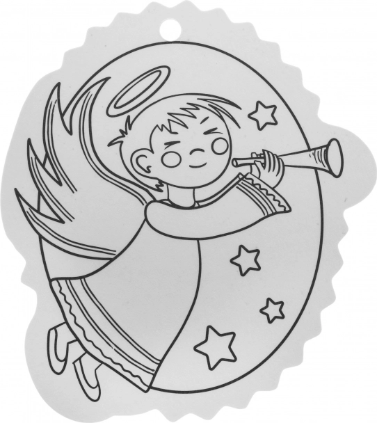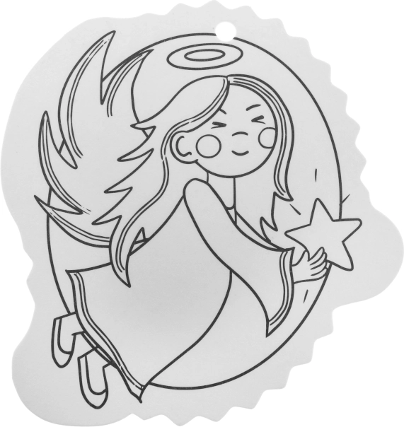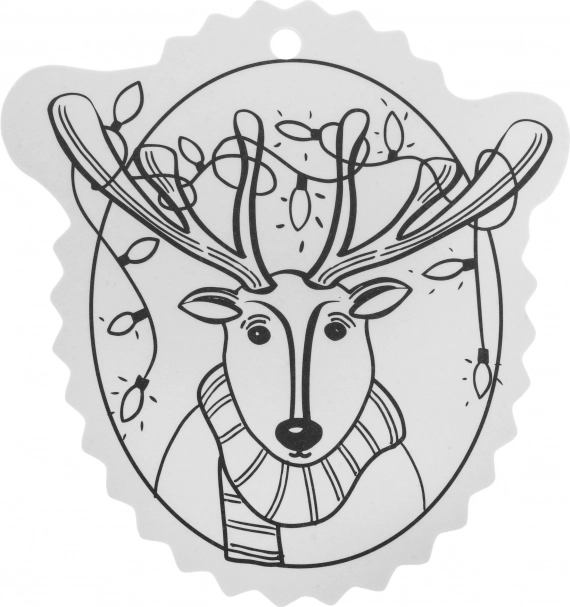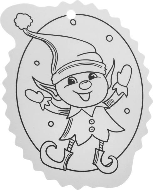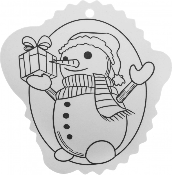 Čiernobiele obrysy uľahčia vyfarbovanie a otvor v hornej časti zabezpečí rýchle zavesenie na stromček či darček.