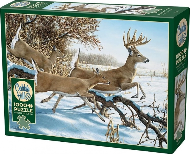 Vychutnajte si skladanie s COBBLE HILL puzzle Útek s 1000 dielikmi a nepravidelnou raznicou, ktorá prináša väčšiu výzvu ako bežné mriežkové puzzle. Súčasťou balenia je predloha 31,6 × 22,9 cm, hotové dielo má rozmer cca 67,6 × 48,9 cm.
