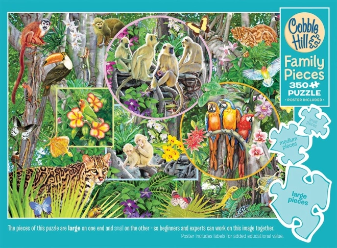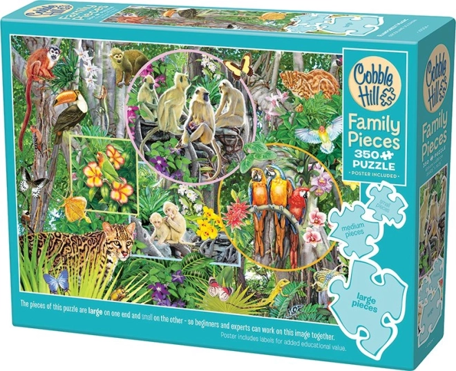 Užite si spoločné chvíle s rodinným puzzle COBBLE HILL – Kúzlo pralesa s 350 dielikmi v troch veľkostiach. Vďaka malým, stredným a veľkým dielikom si skladanie užijú deti, rodičia aj starí rodičia. Neobvyklé tvary dielikov a nesymetrická raznica prinášajú zábavnú výzvu a lepší zážitok zo skladania. Hotový obrázok má rozmer cca 67,6 × 48,9 cm.