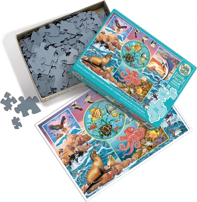 Užite si spoločné skladanie s rodinným puzzle COBBLE HILL – Čaro oceánu o 350 dielikoch. Unikátne balenie kombinuje tri veľkosti dielikov pre deti, rodičov aj starých rodičov, takže si každý príde na svoje. Špeciálna nepravidelná raznica zvyšuje zábavu a výzvu, zatiaľ čo veľkorysý formát 67,6 × 48,9 cm zaručí pôsobivý výsledný obraz.