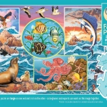 Neobvyklý tvar dielikov a raznica, ktorá nekopíruje štandardnú mriežku, prináša prirodzenú výzvu a pestrejšie skladanie. Výsledný obraz s motívom oceánu poteší detailnosťou a farbami – a po zložení dosahuje rozmer cca 67,6 × 48,9 cm.