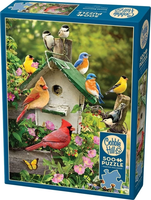 Štýlové puzzle COBBLE HILL s motívom Letná búdka ponúkajú 500 dielikov s netradičnou raznicou a nepravidelnými tvarmi, ktoré prinášajú vyššiu obtiažnosť a dlhšiu zábavu. Súčasťou balenia je predloha 30,5 × 22,9 cm; po zložení má obraz rozmer cca 48,9 × 67,6 cm.