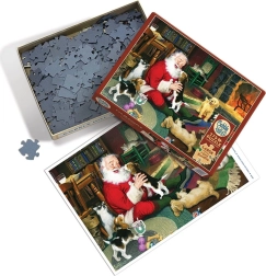 Objavte vianočnú zábavu s puzzle COBBLE HILL z kolekcie Easy Handling – extra veľké dieliky pre ľahšie skladanie, komfortnú manipuláciu a tréning jemnej motoriky. Ilustrácia SANTU pri krbe so šteniatkami vytvára hrejivú sviatočnú atmosféru, ktorá poteší deti, dospelých aj seniorov.