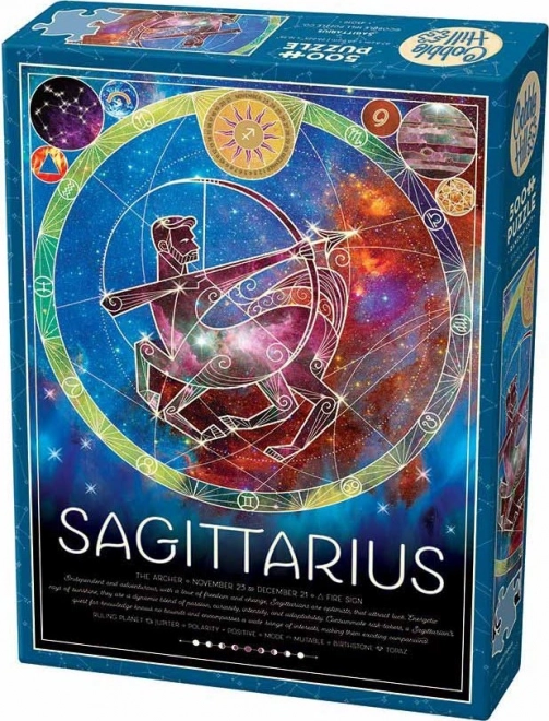 Puzzle COBBLE HILL sa odlišujú unikátnou výrobnou raznicou: dieliky nemajú klasickú mriežku, ich rohy a hrany nie sú v jednej osi a prichádzajú v netradičných tvaroch. To prináša zábavnú výzvu všetkým milovníkom skladania a krásny motivačný motív Strelca z horoskopu dodá dekoratívny výsledok po zložení.