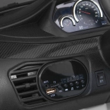 Diaľkový ovládač 2,4 GHz s 3 rýchlosťami a núdzovým STOP tlačidlom. Audio panel s MP3, USB, TF a AUX, navyše zvuky na volante pre väčšiu zábavu.