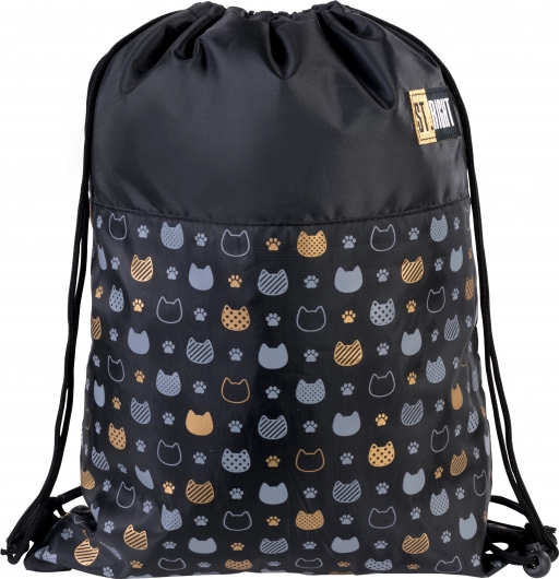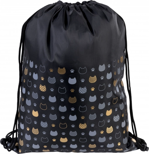 Hľadáte praktické a zároveň štýlové riešenie na prenos obuvi alebo úboru na telesnú výchovu? Vrecko na obuv BAMBINO v čiernej farbe so zlatými mačkami ponúka variabilné nosenie vďaka dvojitým šnúrkam a spoľahlivú ochranu vďaka odolnému materiálu. Je ideálne do školy, na krúžky aj voľnočasové aktivity.