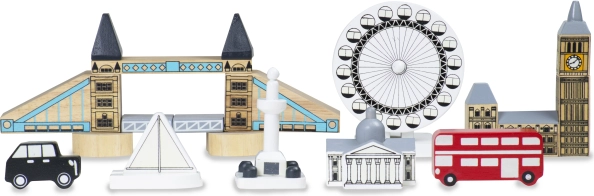 Hračky sú z odolného dreva a ponúkajú tak nielen estetický, ale aj hmatový zážitok pri hre. Sú farebne realisticky spracované, čo umožňuje deťom učiť sa o slávnych londýnskych stavbách.