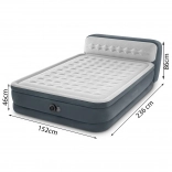 Zabudovaná elektrická pumpa umožňuje rýchle a bezpracné nafúknutie aj vyfúknutie. Príjemný velúrový povrch je šetrný k pokožke a zlepšuje priľnavosť prestieradla. Integrované nafukovacie čelo poskytuje oporu pri čítaní a odpočinku. Posteľ je dodávaná s prepravnou taškou a opravnou záplatou.
