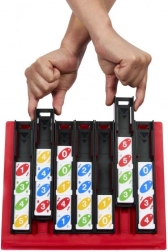 UNO Quatro spája to najlepšie z klasického UNO a stratégie štyri v rade. Hráči striedavo umiestňujú trojuholníkové či štvorcové dieliky s číslami a farbami do štrbinového rámu a snažia sa vytvoriť súvislý rad štyroch rovnakej farby alebo čísla. Napätie zvyšujú špeciálne akcie, ktoré umožnia dieliky presúvať, prehadzovať alebo posúvať celé rady – ideálny mix plánovania, blafovania a zvratov.