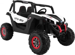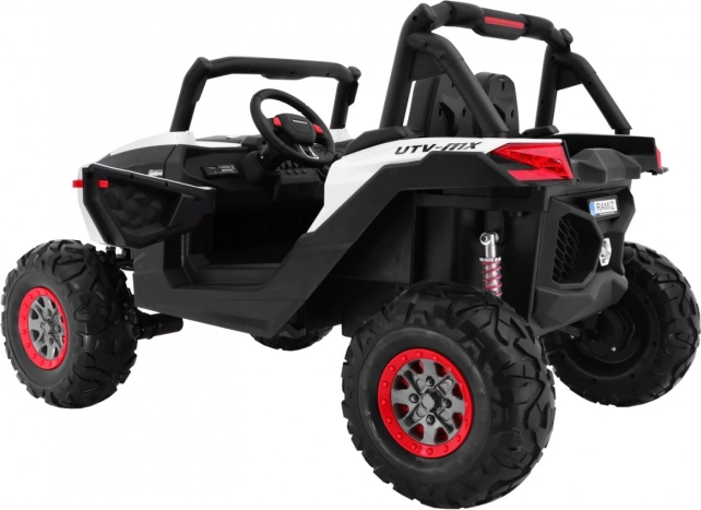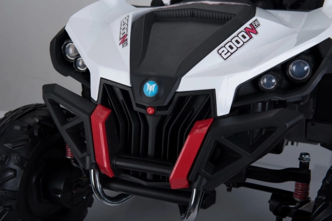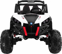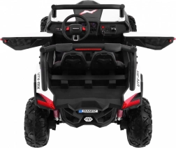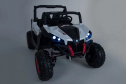 Silné detské buggy s pohonom 4x4, dvoma batériami 2×12 V/7 Ah a štyrmi motormi 4×45 W zvládne aj náročnejší terén. Ponúka prepínanie pohonu 2×4/4×4, mäkké kolesá EVA, plynulý rozjazd, otváracie dvere s blokádou a bezpečnostné pásy. Deti poteší bohatá výbava: Bluetooth/USB/MP3/SD/AUX, FM rádio, zvuky vo volante a LED svetlá vpredu aj vzadu. Rodičia ocenia diaľkové ovládanie 2,4 GHz so STOP tlačidlom a tromi rýchlosťami.