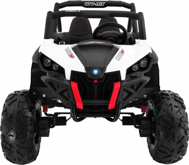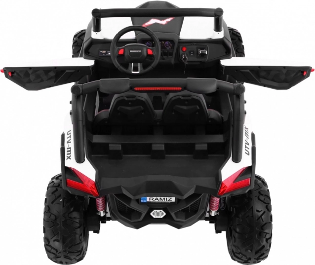 Bezpečnosť majú rodičia v rukách vďaka diaľkovému ovládaču 2,4 GHz s tromi rýchlosťami a funkciou núdzového zastavenia STOP. Vďaka prepínaču 2×4 / 4×4 prispôsobíte výkon terénu aj výdrži. LED osvetlenie vpredu aj vzadu zvyšuje viditeľnosť a dodáva autentický vzhľad skutočného UTV.