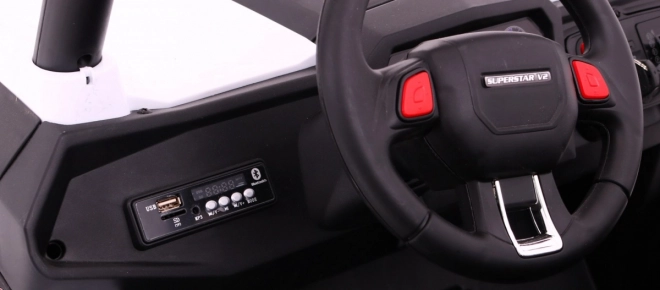 Multimediálny panel prehrá obľúbené skladby cez Bluetooth, USB, SD či AUX. Zvuky vo volante a LED svetlá dotvárajú realistický zážitok.
