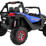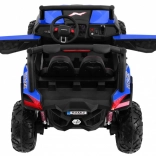 Silné detské terénne auto s pohonom 2×4 alebo 4×4, dvojicou akumulátorov 2× 12 V / 7 Ah a štyrmi motormi 4×45 W. Ponúka diaľkové ovládanie 2,4 GHz s 3 rýchlosťami a bezpečnostným tlačidlom Stop, mäkké EVA kolesá, plne funkčné LED svetlá, odpruženie vpredu aj vzadu, audiopanel s MP3/USB/SD/Bluetooth/FM, štart na kľúčik, otváracie dvere s blokádou, vetrané sedadlo z ekokože s pásmi a zadný bagážnik.