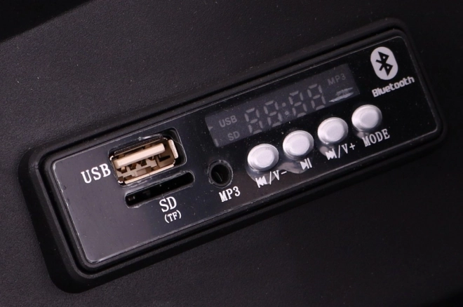 - MP3, SD, FM rádio, prednahrané melódie, AUX, USB, Bluetooth, zvuky na volante