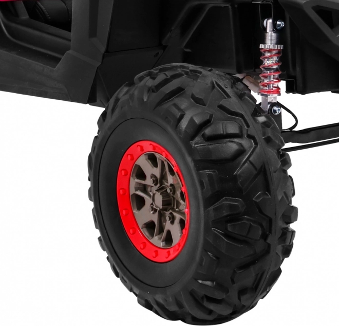 Silný výkon zabezpečujú 4 motory 45 W napájané dvojicou batérií 2 × 12 V / 7 Ah. Prepínanie medzi pohonom 2×4 a 4×4 umožní prispôsobiť jazdu terénu, zatiaľ čo plynulý rozjazd a pružné zavesenie s nastaviteľnými, skrutkovými tlmičmi zaručia komfort na nerovnostiach. Veľké EVA kolesá 35 × 15 cm dodajú stabilitu a tichú prevádzku.