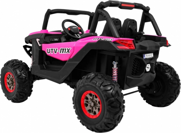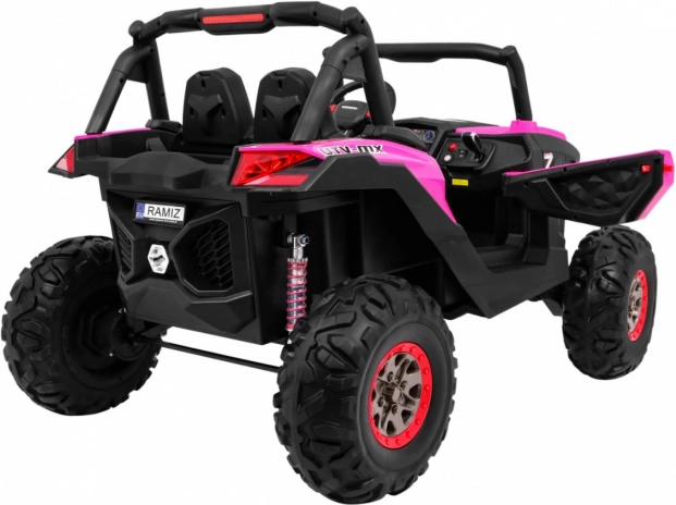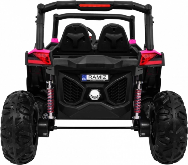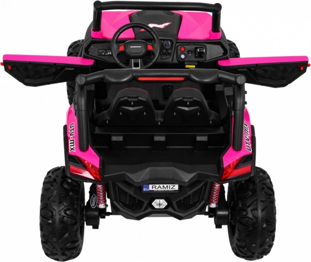 Objavte dobrodružstvo s detským elektrickým buggy 4x4 v ružovej farbe – robustné dvojmiestne vozidlo s prepínateľným pohonom 2×4/4×4, veľkými EVA kolesami a bohatou výbavou. Vďaka diaľkovému ovládaču 2,4 GHz s tromi rýchlosťami, bezpečnostnému tlačidlu Stop, mäkkému sedadlu z eko kože a svetelným LED efektom ponúka bezpečnú aj zábavnú jazdu. Nechýba MP3/USB/SD/Bluetooth, FM rádio, otváracie dvere s blokádou a zadný úložný box.