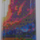 Postup: Horná strana plátna je potiahnutá lepidlom a prekrytá priehľadnou fóliou. Fóliu odkrývajte postupne, čím zabránite znečisteniu lepiacej vrstvy. Plátno obsahuje značenie pre jednotlivé sáčky s kamienkami. Kamienky vysypte do mištičky, použite pero s voskom na aplikáciu. Po dokončení farby kamienky vráťte do sáčku a pokračujte s ďalšou.
