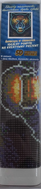 Vytvorte si pôsobivý obraz tigra technikou diamantového maľovania a užite si hodiny kreatívnej relaxácie. Drobnými „diamantmi“ postupne vypĺňate predtlačené symboly na plátne – výsledkom je žiarivý obraz, ktorý po nasvietení čiastočne svieti v tme. Skvelé na spoločné tvorenie s rodinou alebo ako originálny darček.