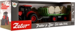 Traktor so zvukom a svetlom s odpojiteľným prívesom a balíkmi sena