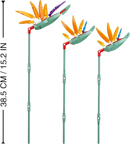 Stavebnica je obľúbená pre svoju živú kombináciu farieb, ktorá dokonale napodobňuje reálne kvety. Vďaka živým odtieňom oranžovej a zelenej upúta na prvý pohľad.
