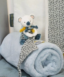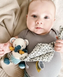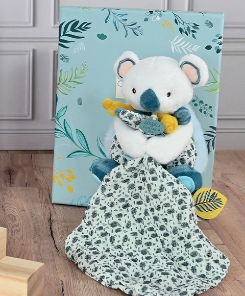 Plyšová koala Yoca a maznáčik tvoria nežnú dvojicu, ktorá sprevádza dieťatko od prvých dní. Mimoriadne mäkký povrch príjemne hladí a upokojuje, zatiaľ čo štýlová darčeková krabička podčiarkuje výnimočnosť tejto sady. Praktická údržba umožňuje jednoduché pranie a šetrné sušenie.