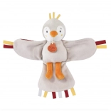 Tento mäkkučký hudobný vtáčik v harmonických odtieňoch červenej deti upokojí jemnou zvukovou prítomnosťou a ponúkne im mnoho podnetov na objavovanie. Šuštivé a textúrované prvky, farebné stužky na krídlach, chvostíku aj hlavičke podporujú rozvoj zmyslov a jemnej motoriky.