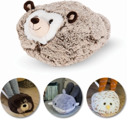 Jednodielny mäkučký a teplučký obrovský domáci papuč, ktorý slúži ako ohrievač nôh a zároveň môže poslúžiť aj ako dizajnový doplnok alebo hračka, pretože deti milujú roztomilé veci. Super mäkká výplň a pohodlný vnútro zabezpečia prirodzené zohriatie nôh bez rizika popálenia alebo prehriatia. Vhodné na vnútorné použitie, ideálne na odpočinok na pohovke alebo v posteli. Noste ho pri sledovaní televízie, hraní hier, práci na počítači, čítaní knihy či iných relaxačných aktivitách, pri ktorých sedíte alebo ležíte. Tento produktový rad ponúka rôzne motívy zvieratiek, a tak môže mať každý člen rodiny svojho zvieracieho priateľa pri nohách. V ponuke Cozy Noxxiez nájdete vo viacerých prípadoch aj hrejivý plyšový vankúš 3 v 1 alebo deku s kapucňou a vreckami v motíve rovnakého zvieratka a môžete mať tak celú ohrievaciu sadu v rovnakom dizajne. V roku 2023 pribudli v ponuke, ako úplná novinka, aj televízne mikinové deky pre deti vo veku 3 – 6 rokov a 7 – 12 rokov, ktoré taktiež tematicky patria k niektorým kolekciám.