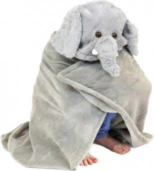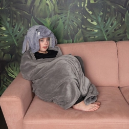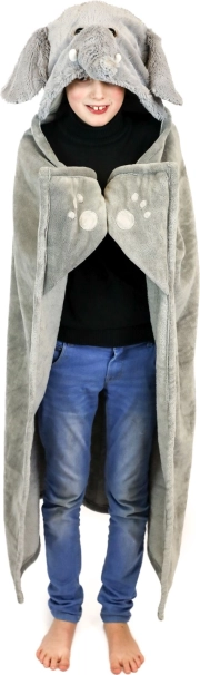 Kapucňa s uškami a chobotom spolu s rohovými vreckami premenia deku na hravý zvierací „kostým“ a udržia ruky v teple.
