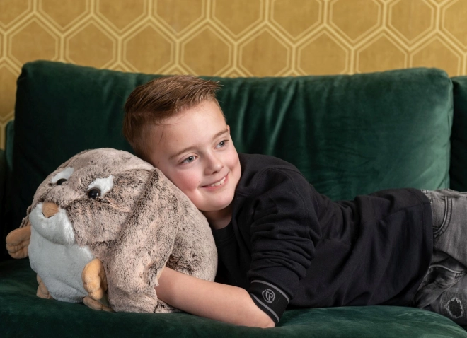 Hrejivý vankúš zajačik 3 v 1 Cozy Noxxiez spája pohodlie, zábavu a funkčnosť. Je vyrobený z extra mäkkého polyesteru, príjemného na dotyk a bezpečného aj pre najmenších. Vďaka šikovným bočným otvorom poslúži ako rukávnik, ktorý behom chvíľky zohreje studené ruky.
