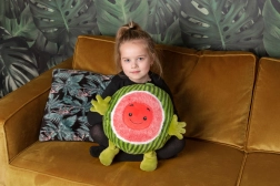 Cozy Noxxiez Melón je plyšový vankúš, rukávnik a verný kamarát v jednom. Mäkká textúra a hravý dizajn robia z tohto vankúša ideálneho spoločníka pre deti na cestách aj doma.