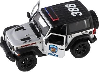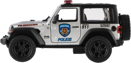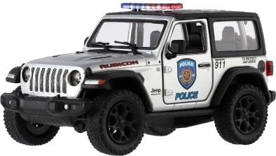 Kovový model auta Jeep Wrangler Polícia 2018 v mierke 1:32 s otváracími dverami a funkciou spätného naťahovania. Skvelá voľba pre deti od 3 rokov.