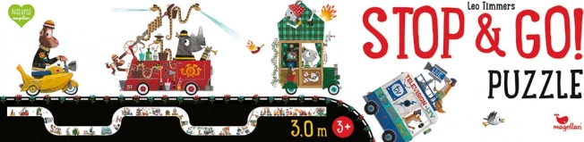 Magellan puzzle Zastav sa a choď je zábavná a nápaditá dopravná hračka pre deti, ktorú vytvoril ilustrátor Leo Timmers. Podporuje koncentráciu a vizuálne myslenie so svojimi vtipnými vozidlami plnými zvieratiek.
