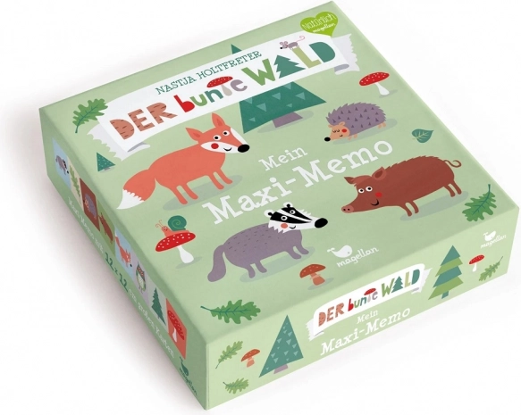 Veľké pexeso s motívmi lesa od Magellan. 16 pevných kariet 12×12 cm, rozvíja pamäť a postreh detí od 3 rokov. Jemný pastelový dizajn od Nastje Holtfreter.
