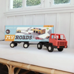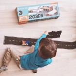 Štartovací set MyRoads prináša deťom nekonečné možnosti skladania trás až do dĺžky 700 cm. Diely z odolného materiálu na báze recyklovaného dreva sa hladko prepájajú a držia tvar, takže si deti môžu vytvárať mestá, pretekárske okruhy aj dopravné uzly. Nadčasový retro vzhľad poteší malých aj veľkých staviteľov.