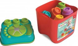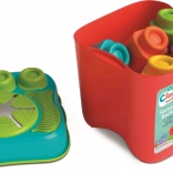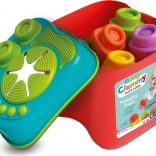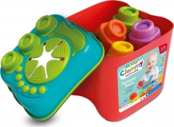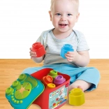 Košík s 15 kockami. Mäkké veko so senzorickými prvkami poskytuje veľa zábavy a podporuje objavovanie. Ľahko sa otvára a zatvára.