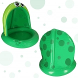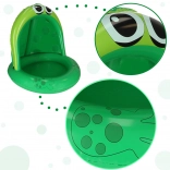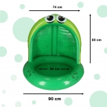 Živý zelený dizajn s veľkými žabími očami a nafukovacími nožičkami dodáva autentický vzhľad. Navyše šikovný prístrešok chráni deti pred škodlivým UV žiarením, čo zaručuje dlhé hodiny bezpečnej hry vo vode.