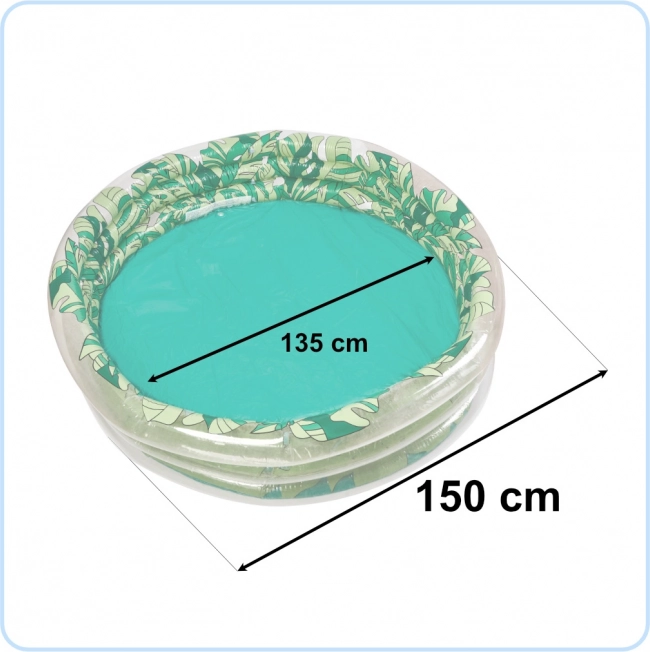 Tento krásny nafukovací bazén s grafikou zelených listov sa stane nádhernou dekoráciou vašej záhrady aj miestom pre nezabudnuteľnú zábavu vášho dieťaťa. Vďaka svojim rozmerom - priemer 150 cm, vnútorný priemer 135 cm - je dostatočne priestranný pre viac detí.