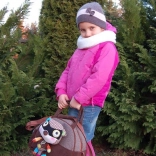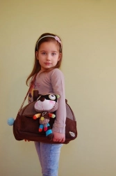 Na taške je štýlový maskot, ktorý možno ľahko odpojiť a použiť ako hračku. Toto variabilné riešenie zaujme malých aj veľkých.