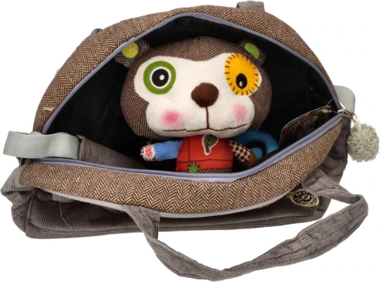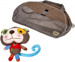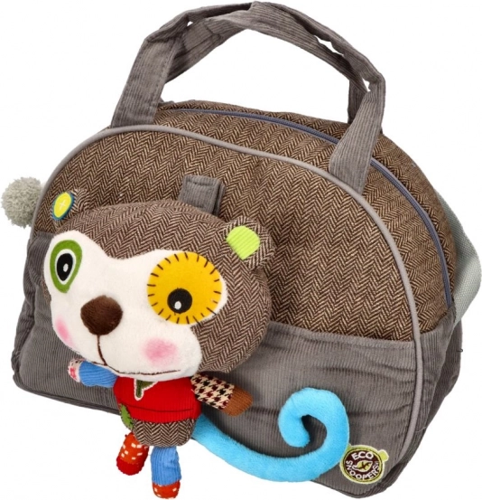 Taška je ozdobená motívom opičky, ktorý poteší každé dieťa.