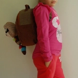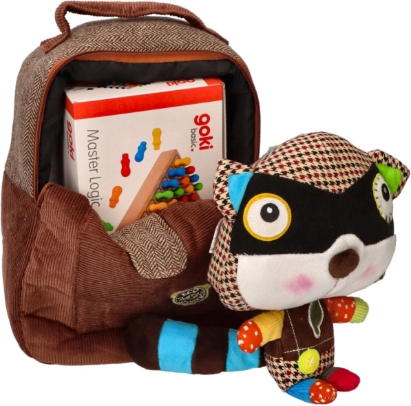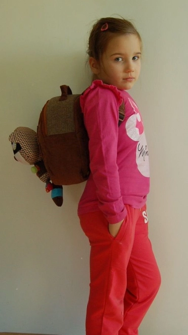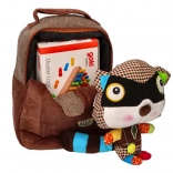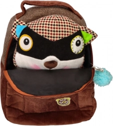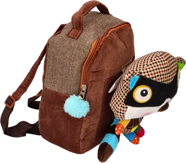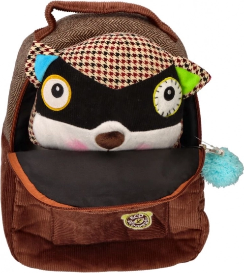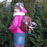 Batoh má na sebe hravú hračku v tvare mývala, ktorá robí z nosenia batoha zábavu.