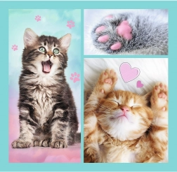 Táto sada puzzle 3 v 1 ponúka tri samostatné obrázky s pôvabnými mačiatkami. Vďaka rozdielnemu počtu dielikov si deti môžu vybrať náročnosť podľa veku a nálady a rozvíjať tak trpezlivosť, logiku a jemnú motoriku.