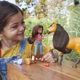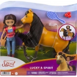 Vstúpte do sveta animovaného seriálu DreamWorks Spirit a znovu prežite obľúbené scény s herným setom Lucky a jej verným mustangom Spiritom. Bábika Lucky má plastové džínsy, maminine topánky a krásny vyšívaný top z látky. Vďaka 7 kĺbom ju ľahko posadíte do sedla alebo nastavíte do akčnej pozície. Spirit zaujme realistickou hrivou a chvostom na úpravu účesu a pohyblivou hlavou pre živšiu hru.