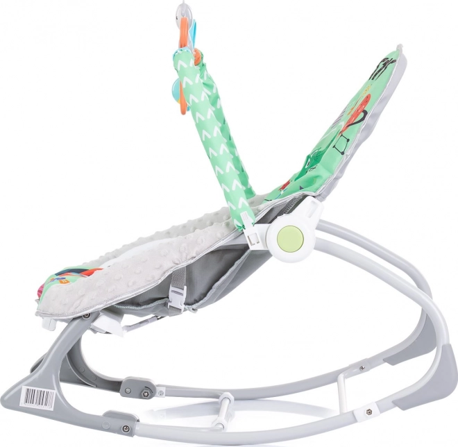 Vibračné ležadlo pre bábätká Baby Spa Green poskytuje dvojitú funkčnosť ako hojdačka a stolička. Je ideálne pre deti od narodenia, ponúka melódie a jemné vibrácie na upokojenie aj zábavné závesné hračky.