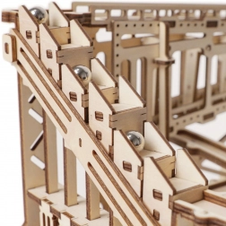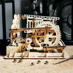 ROBOTIME ROKR Marble Run Squad je detailné 3D drevené puzzle, ktoré po zostavení ožije šikovnou mechanikou. Zatočte kľukou a sledujte, ako oceľové guľôčky svištia po rovných aj klopených dráhach, prechádzajú padacími dvierkami a stúpajú zdvihákom. Model vyniká precíznym laserovým výrezom, stabilnou konštrukciou a je vyrobený z bezpečných, netoxických materiálov.