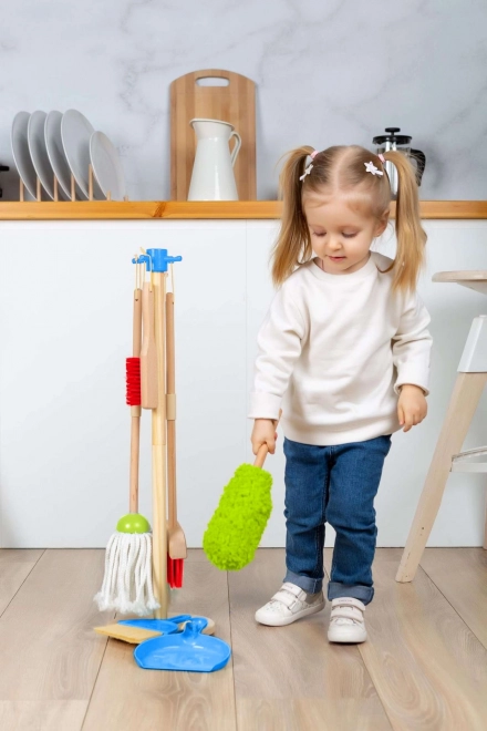 Všetky upratovacie nástroje sa dajú jednoducho zavesiť na stabilný drevený stojan, čo uľahčuje ich úschovu a udržiava poriadok.