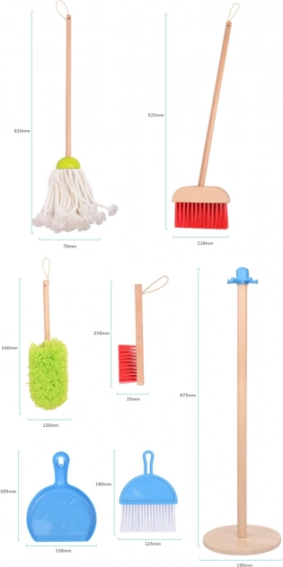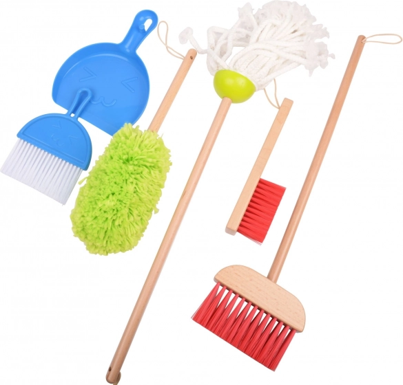 - Veľký smeták, mop, prachovka, malý smeták s rúčkou, plastový smetáček s lopatkou, drevený stojan