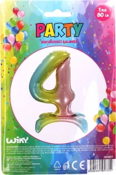 Oživte svoju oslavu dúhovým balónikom v tvare čísla 4. Veľký formát je viditeľný aj z diaľky a farebný prechod vytvára atraktívny efekt, ktorý skvelo zapadne do modernej dekorácie na narodeniny alebo jubileum.