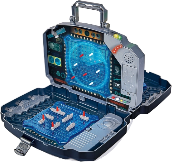 Prenosná elektronická hra Námorná bitka v odolnom kufríku s dvojicou modrých herných mriežok, úložnými priehradkami a efektmi svetla a zvuku. Ponúka 2 hráčov, jednoduché sledovanie zásahov pomocou červených a bielych kolíkov a intuitívne ovládanie pre deti od 5 rokov. Ideálna na doma aj na cesty.