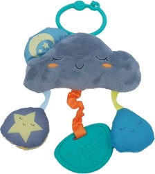 Roztomilý závesný mráčik pre bábätká od 3 mesiacov prináša obojstranný dizajn Deň/Noc, ktorý baví aj upokojuje. Ponúka šuštiace, pískacie a hrkajúce prvky, vibrácie po potiahnutí a mäkké hryzadlo pre úľavu od zúbkov. Vďaka praktickému klipu ho ľahko pripevníte na kočík, postieľku či autosedačku, takže je ideálny na doma aj na cesty.