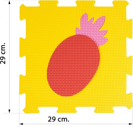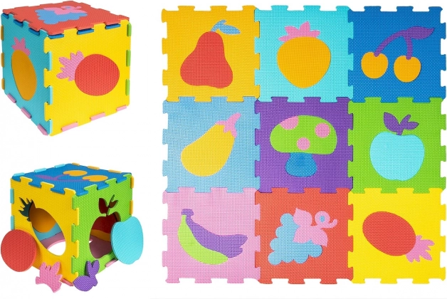 Pěnová hracia podložka s motívmi ovocia kombinuje komfort a vzdelávaciu zábavu. Mäkký a na dotyk príjemný materiál tlmí nárazy a izoluje chlad od podlahy, takže je ideálna na hranie, cvičenie aj krátky odpočinok. Diely do seba ľahko zapadajú a umožnia skladať tak ploché koberce, ako aj priestorové konštrukcie.